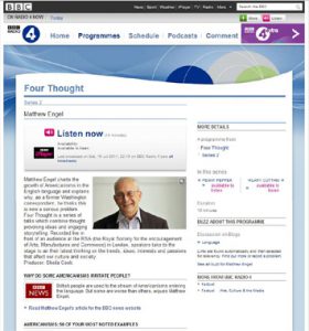 前回紹介したMatthew Engelさんの"Why do some Americanisms irritate people?"。この記事の元になっているスピーチが、現在BBCのポッドキャスティングで聞くことができま […]