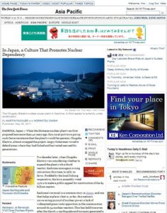 「Nuclear Dependency」⇒「原発依存」~New York Times